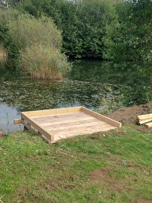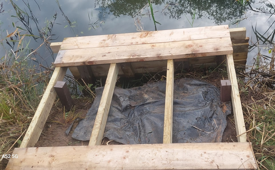 Yaddlethorpe Tench and Crucians pond removed 4 old platforms, installed new larger one’s, Ginge had a tidy up around pond, and grass cut.