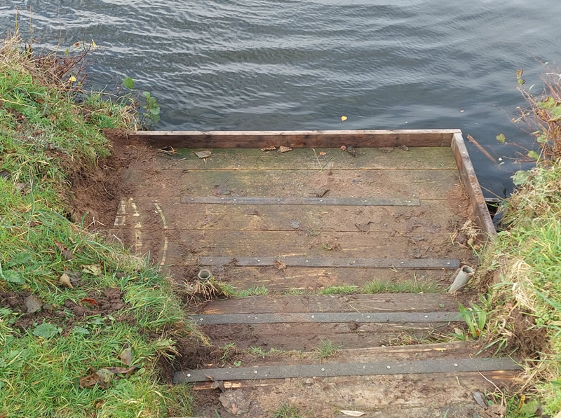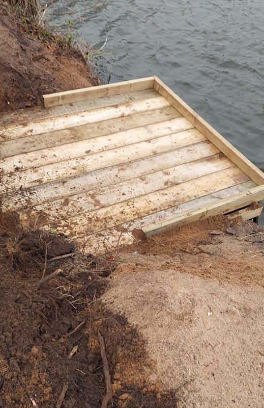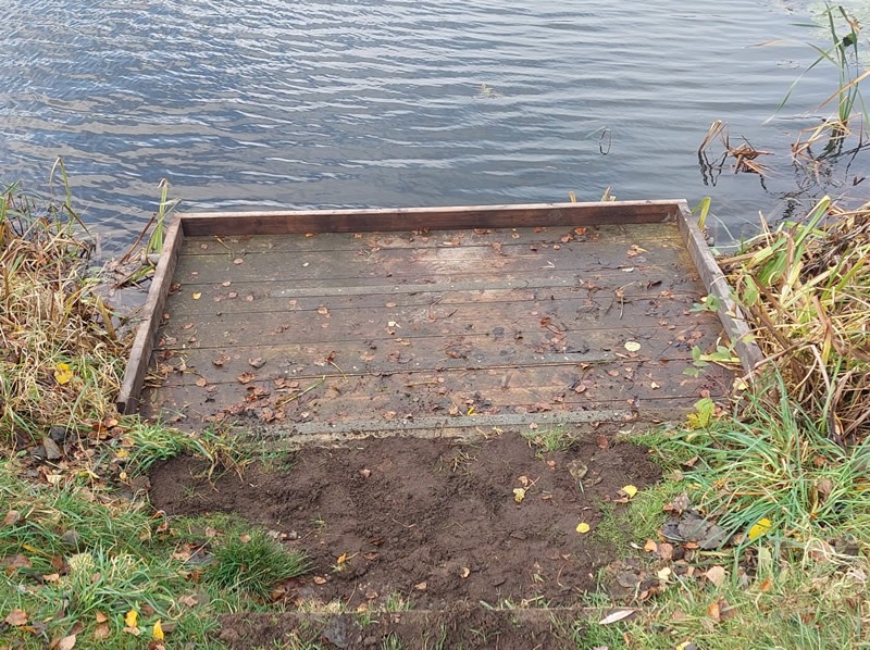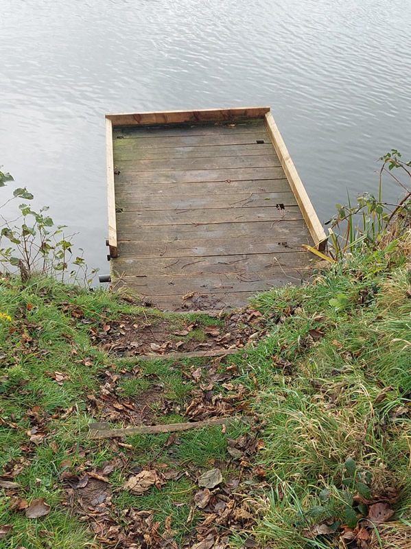 Kick boards and anti-slip strips added to some of the platforms on Kestrel pond. Boards put on the new platform, still requires steps.