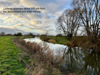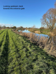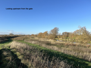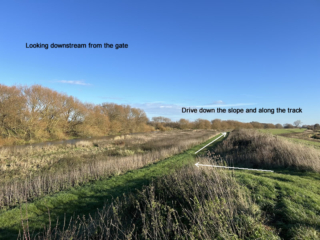 Downstream – heading downstream you should drive along the foot of the flood bank. There is a turning circle at the far end. Parking to be announced.