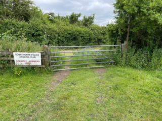 Our gated access to Ladypitt is on the other side of the roundabout. Drive down the lane (it can be a little bumpy and muddy so beware!) to the river. The lane is secured with a chained gate and combination padlock. Please leave the gate secure after entering or leaving the fishery and please remember to tumble the combination.