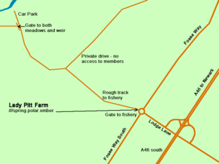 Once clear of East Stoke you will see a road to the left, signposted for Elston and Shelton. At that junction there is a large Mansion House known as Eden Hall (Sat’ Nav location). Directly opposite that left turn is a lay-by with a bus stop. The entrance to our stretch is in that lay-by. Another alternative is to follow the a46 past Newark and carry on south until you see an exit sign for a slip road for East Stoke or Syerston. Turn right at the top of the slip road and head towards East Stoke/Syerston, past Eden Hall on your left until you reach a small roundabout.